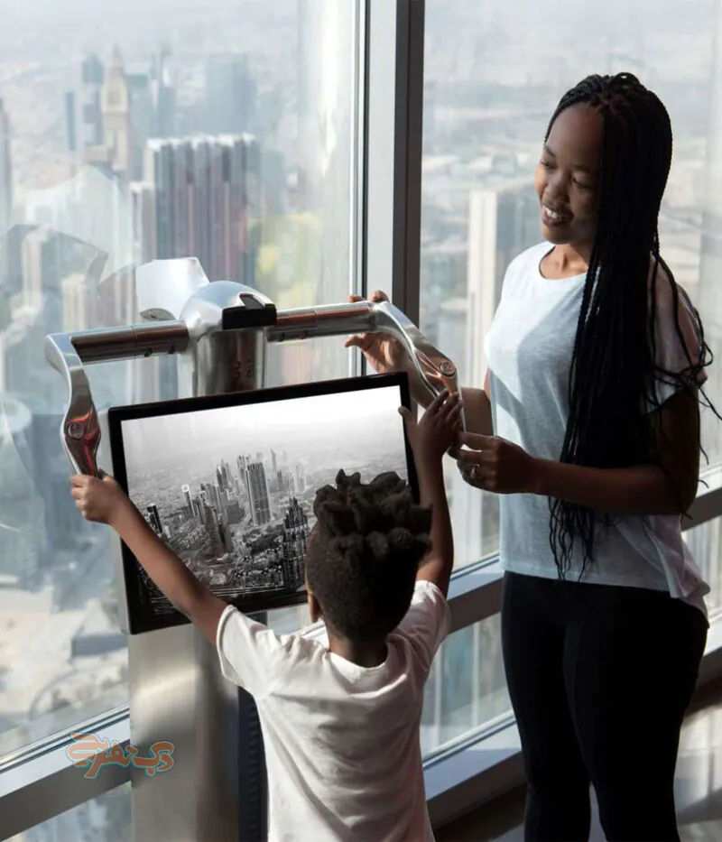 - نمایشگرهای تعاملی در طبقه ۱۲۴ و چشمانداز ۳۶۰ درجهای بینظیر از دبی.