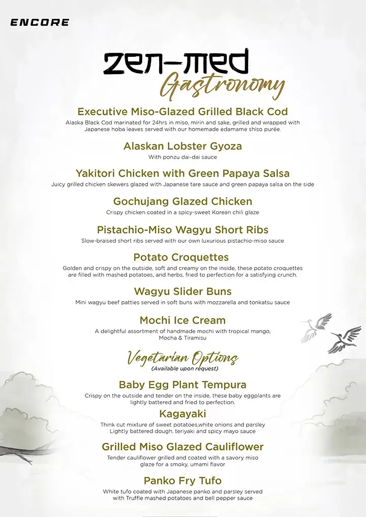 • منوی غذایی Zen-Med با ترکیب طعم‌های مدیترانه‌ای و ژاپنی (لیست 1 و 2)